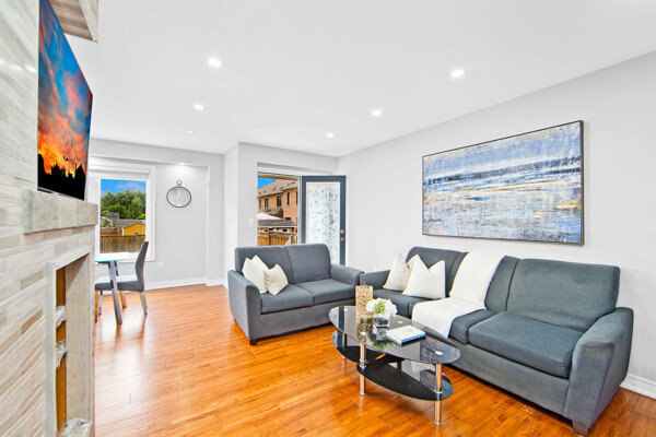 Absolutely Stunning 3 Bedrooms, 4 Bathrooms Freehold End Unit Townhome Situated In The Town Of Brooklin. Sun Filled Open Concept Main Floor, Kitchen W/Granite Countertop, Center Island. Centerpiece Wall With B/I Rotating Tv. Hardwood On Main Floor. Stained Oak Stairs With Wrought Iron Pickets. Garden Door W/O To A Fenced Large Backyard. Pot Lights In The Main Floor & Bedrooms. Exterior Pot Lights With Timer. Gas Connection Near Patio For BBQ. Main Bed Rm With W/I Closet & En-Suite Bath. 2nd Floor Laundry. Close To All Amenities Schools, Parks, Shopping, Childcare Center, Church & Highway 407. Steps To Public Transit.